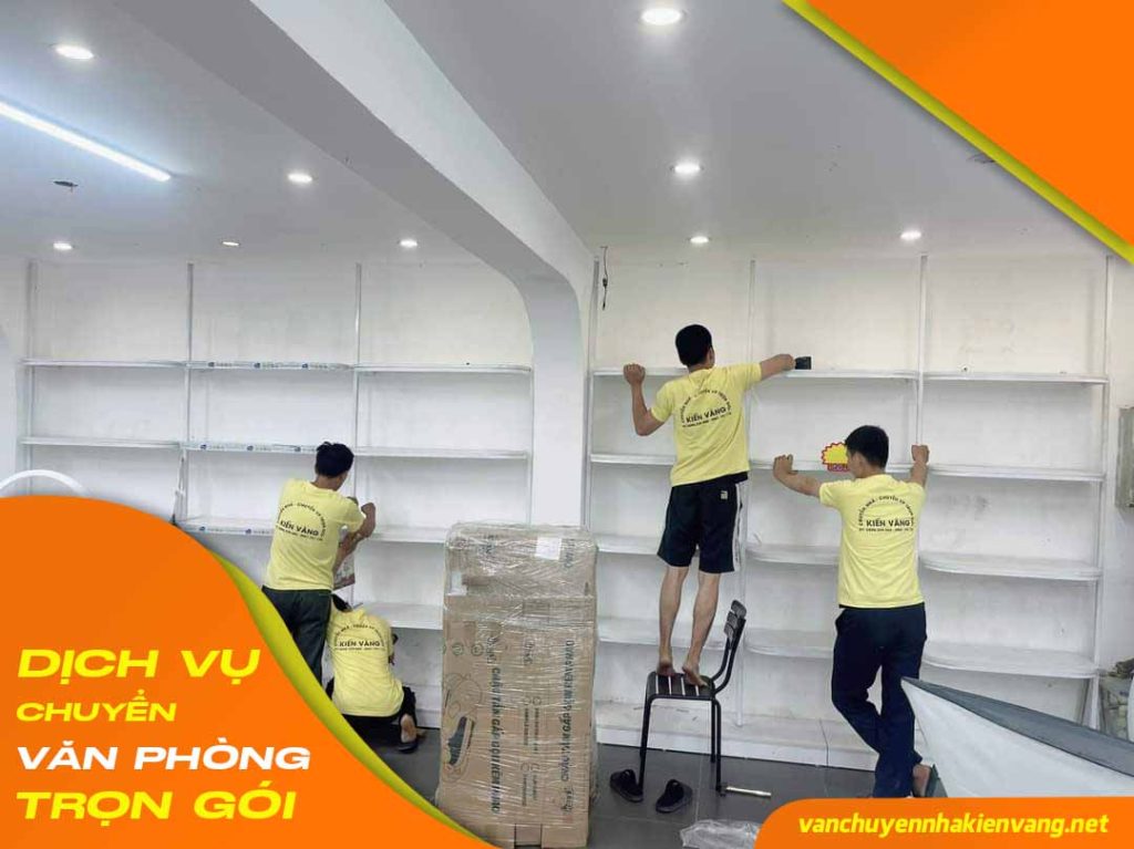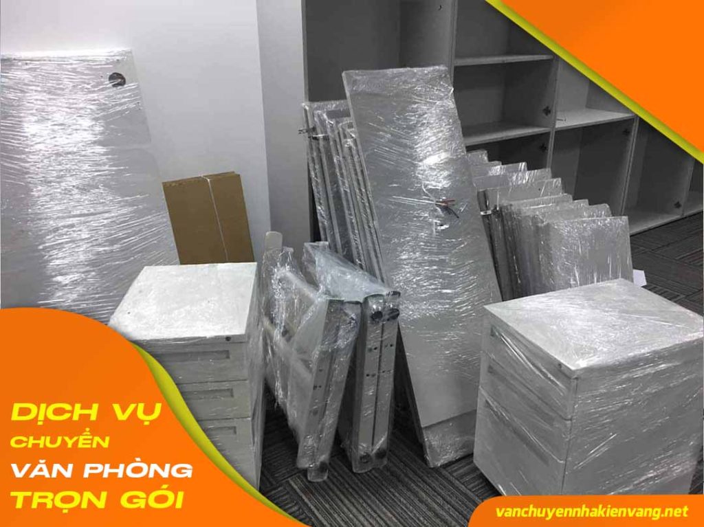 - Tháo dỡ tủ, kệ, bàn làm việc.. Và tiến hành bọc lót và đóng gói bằng thùng carton và màng bọc PE để đảm bảo an toàn.